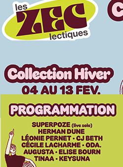 Cette collection Hiver vous propose des soirées avec chacune son atmosphère et son esthétique musicale, précieuse et intimiste. Au programme de cette nouvelle édition : LÉONIE PERNET, HERMAN DUNE, TINAA, KEYSUNA, ELISE BOURN, AUGUSTA, oda., CÉCILE LACHARME, SUPERPOZE.